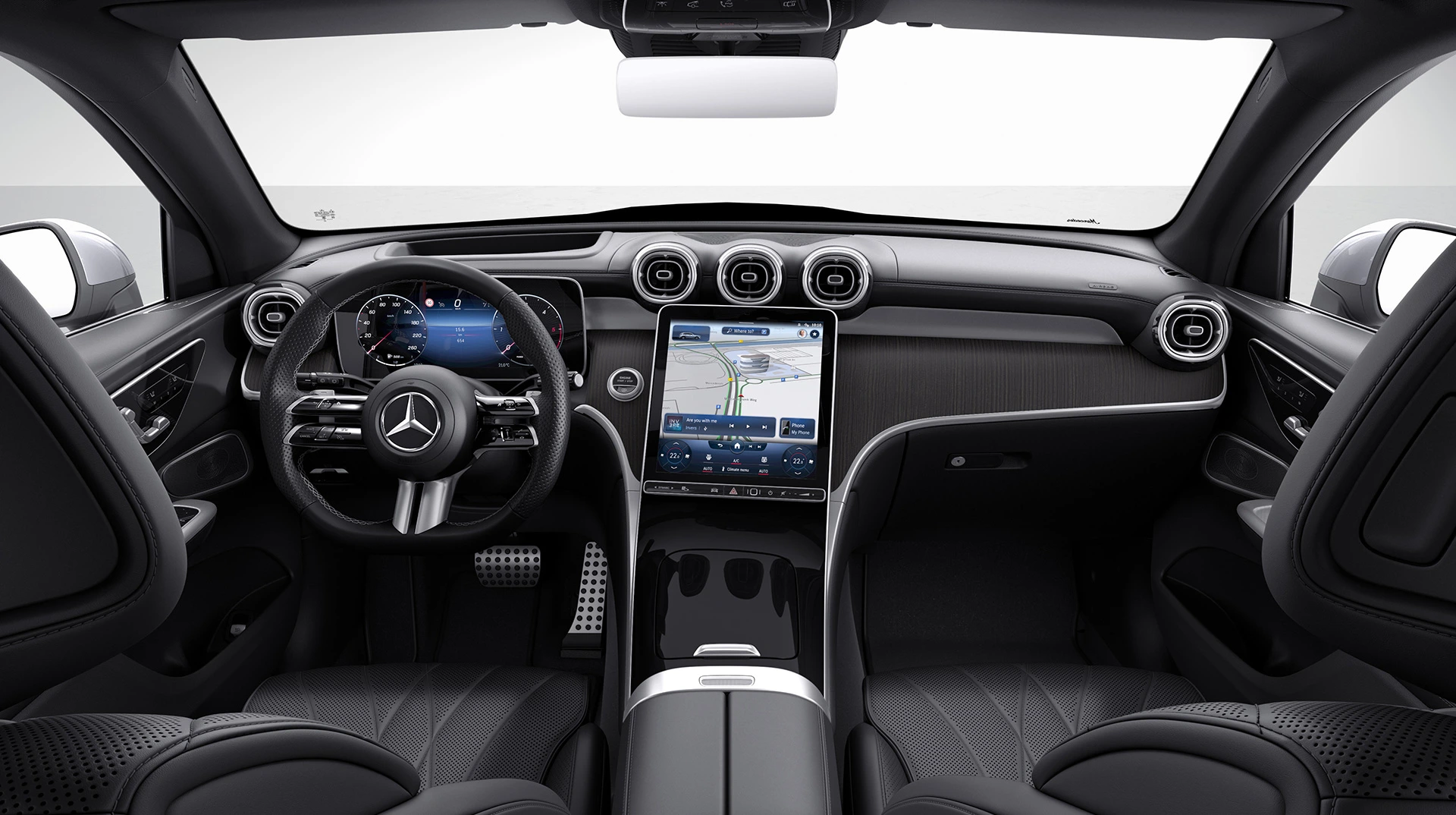 The interior of the new GLC SUV sets standards. Be it the central display tilted towards the driver, the multifunction sports steering wheel or high-quality trim elements: high-quality materials ensure luxurious comfort that you can feel – on every journey.